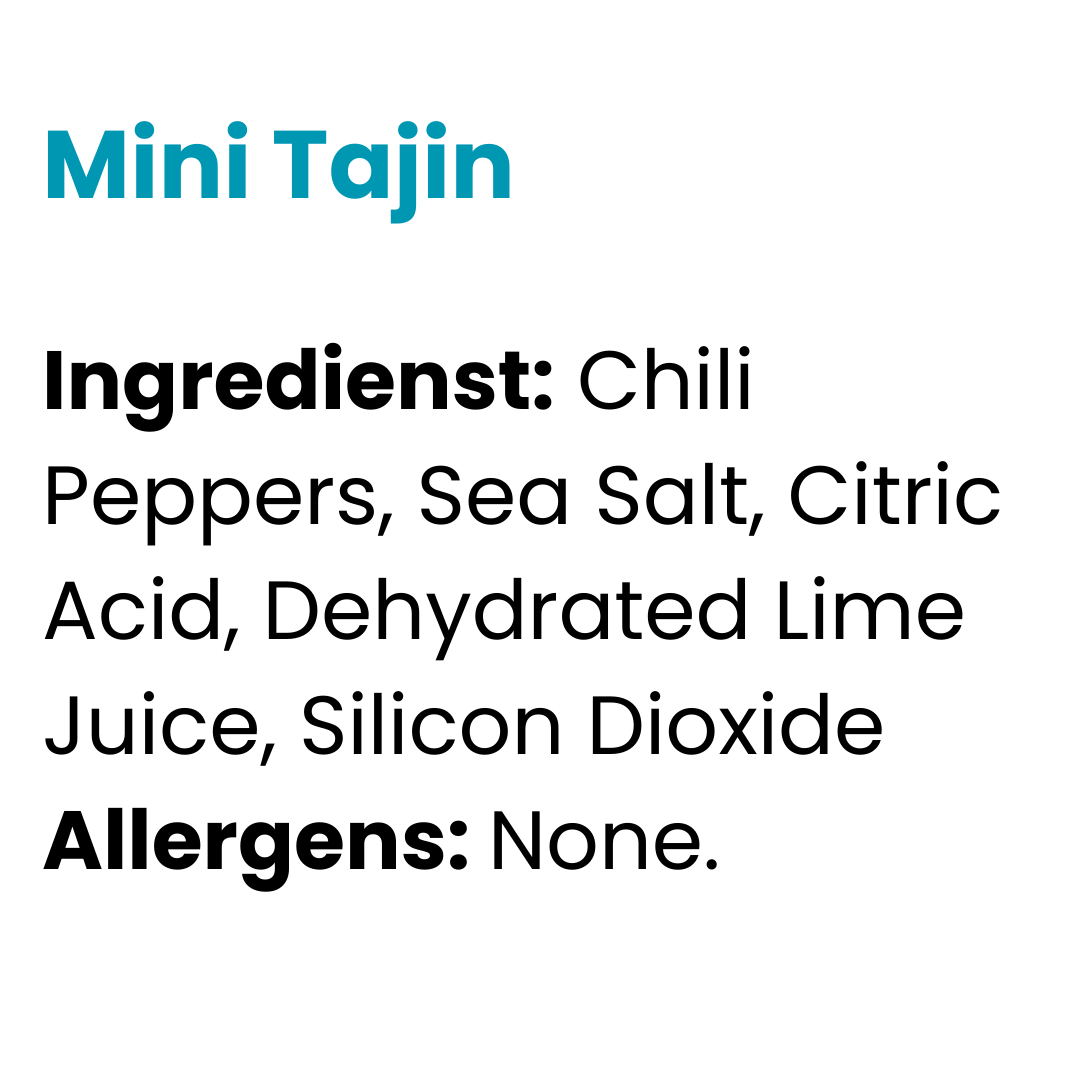 Ingredienst: Chili Peppers, Sea Salt, Citric Acid, Dehydrated Lime Juice, Silicon Dioxide